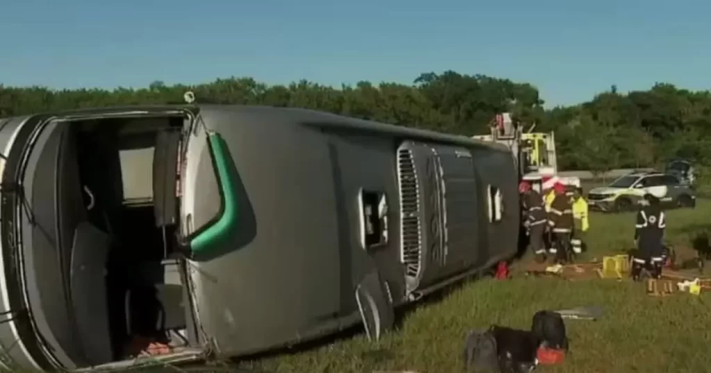 Em cerca de 40 km de distância do destino, o motorista do ônibus teria perdido o controle em uma rotatória e o ônibus tombou.