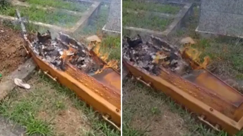 Criminosos invadiram o cemitério municipal logo após um sepultamento e atearam fogo no caixão de um homem que havia acabado de ser enterrado.