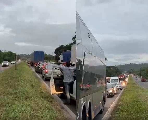 A pista está completamente interditada. Agentes da Polícia Rodoviária Federal foram acionados para atender à ocorrência.