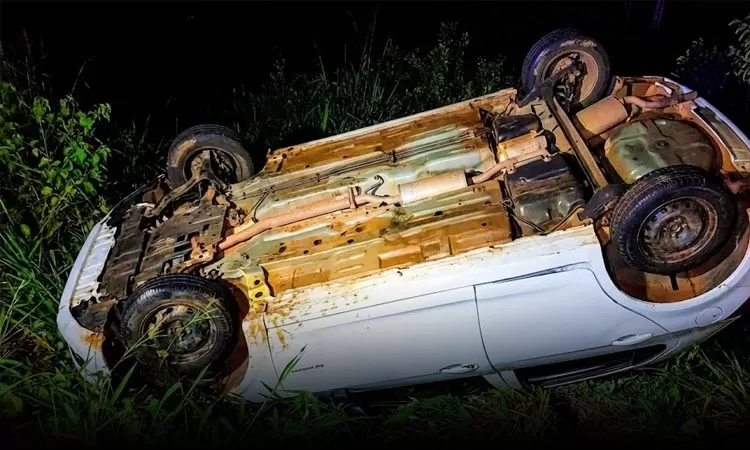 O veículo foi encontrado por populares, virado, com os pneus para cima, em uma área de matagal, às margens da estrada.