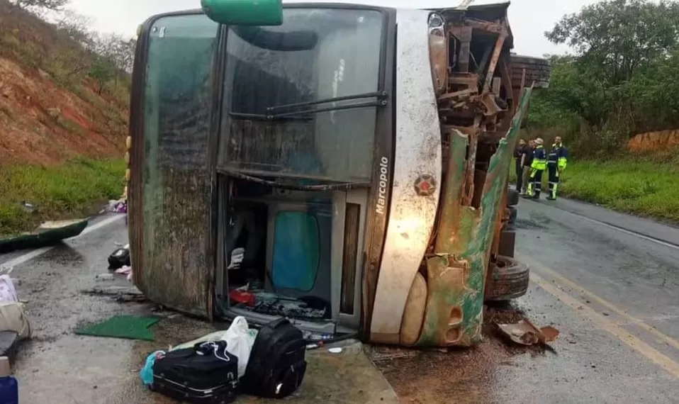 O coletivo passava no km 597 da BR-116, quando tombou, por volta das 3h, segundo a Polícia Rodoviária Federal (PRF). A pista estava molhada no momento do acidente e chegou a ficar interditada até a remoção do veículo.