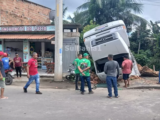 Na manhã deste sábado (11), um caminhão que transportava uma carga de bloco se envolveu em um acidente em um trecho do bairro Leonel Ribeiro, em Gandu.