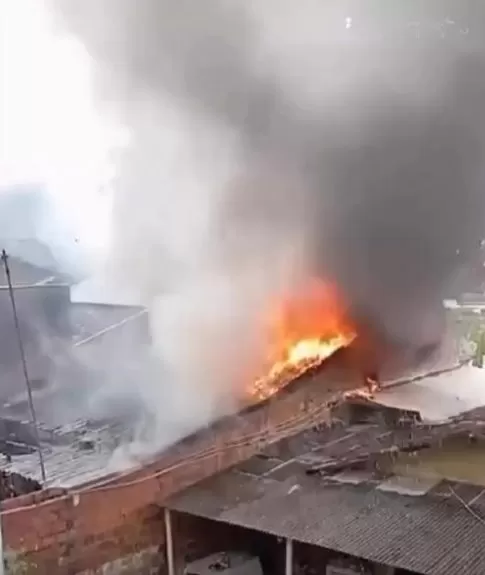 O incêndio foi controlado por vizinhos, que usaram baldes de água e mangueiras para apagar o fogo.
