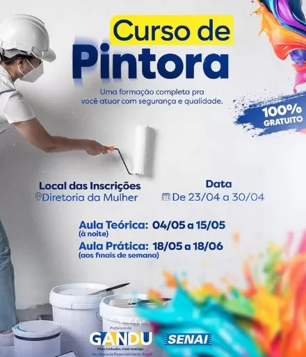 Atenção mulheres! Chegou mais uma grande oportunidade de aprender uma profissão e garantir espaço no mercado de trabalho. A prefeitura abriu nesta quinta (23), as inscrições para o curso de pintora profissional.