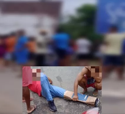 Moradores auxiliaram no socorro antes da chegada da Unidade do Samu, com um pedaço de papelão apoiado na região da perna, próximo à canela.