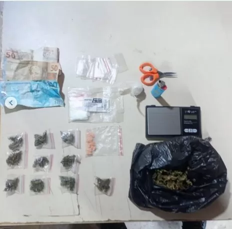 Na sacola foi encontrada farta quantidade de drogas além de outros materiais.