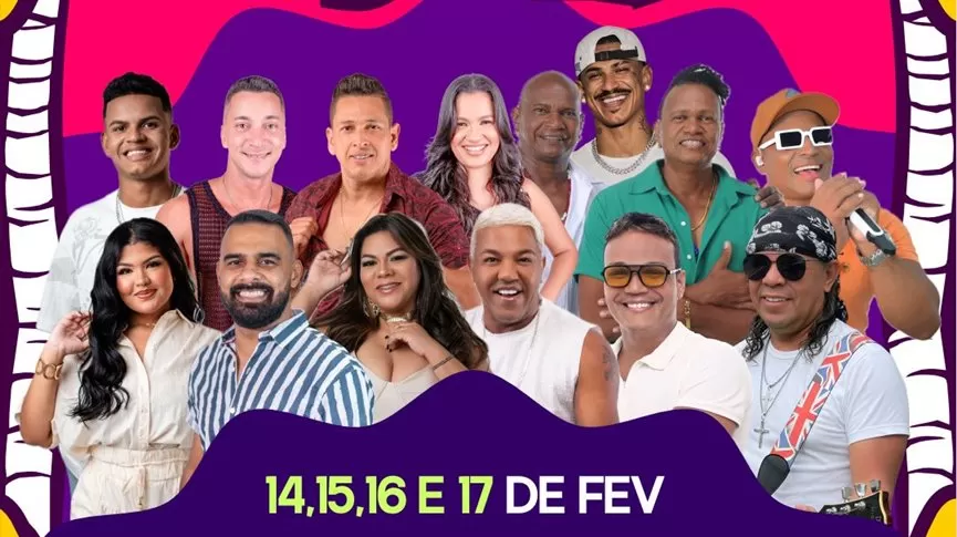 Entre as atrações confirmadas estão Pipoco do Trovão, Gil Barbosa, Suíres Borges, Companhia no Kaprixxo, Banda Pirilampo, Erika Trindade, Karamba na Kara, Sinho Ferrari, Banda Groovai e Viola de Doze, que devem garantir a animação dos foliões durante os quatro dias de evento.