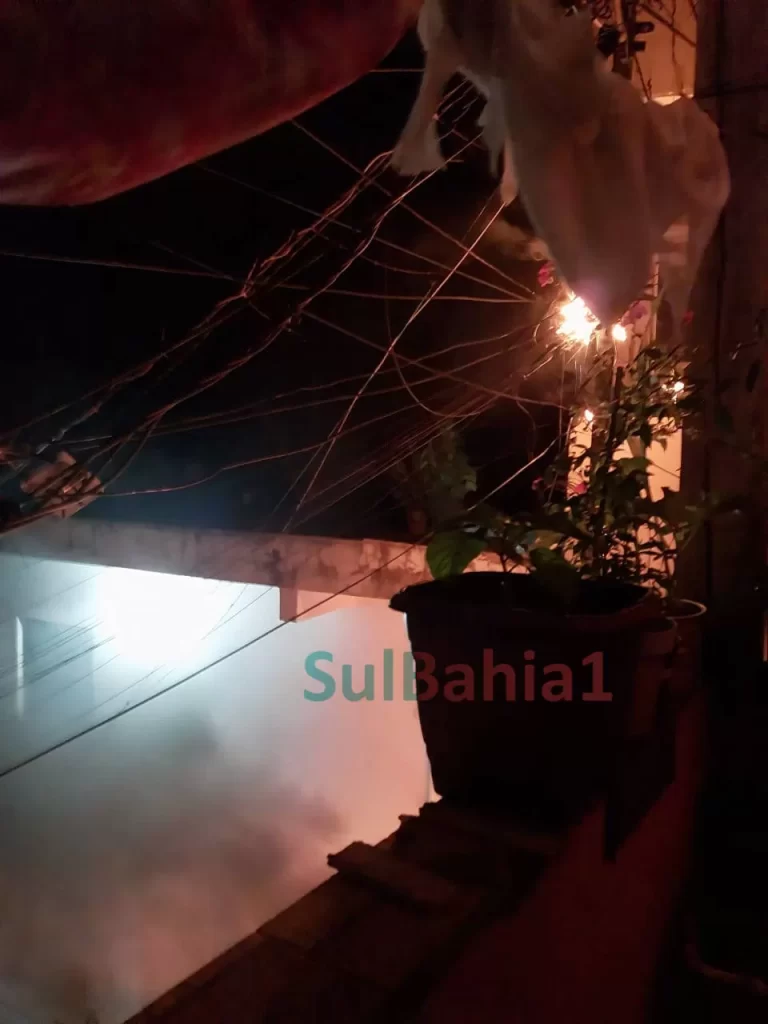 No vídeo [abaixo] uma moradora pede socorro ao perceber que o fogo se espalha rapidamente pela fiação elétrica.