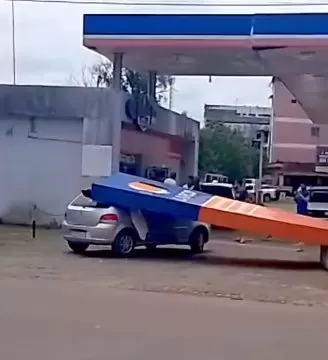 Um incidente chamou a atenção dos moradores do Bairro da Aguazinha, em Valença. Uma placa de posto de combustível desabou e atingiu um carro que estava estacionado na Rua Quintino Bocaiúva, na manhã deste sábado (27).