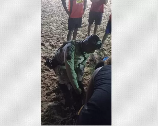 Policiais Militares da 72ª Companhia Independente de Polícia Militar (CIPM) prestaram socorro a um jogador de futebol que passou mal enquanto praticava futebol de areia na Praia da Coroinha, na orla de Itacaré, na noite desta quinta-feira (04).