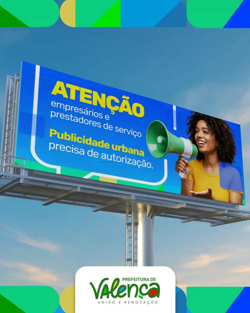 A instalação de faixas, cartazes, outdoors e outros meios de propaganda em Valença exige autorização prévia da Prefeitura Municipal. A medida é fundamental para garantir a organização dos espaços públicos, o respeito às normas urbanas e a preservação da paisagem da cidade.