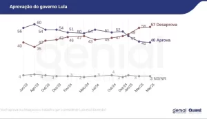 Já a aprovação foi de 41% para 40%, o menor nível registrado até agora. Ambas as variações ocorreram dentro da margem de erro.