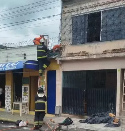 Após o choque, ele caiu sobre o telhado de um imóvel vizinho.