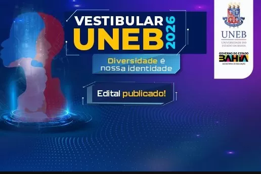 A UNEB lançou, nesta terça-feira (9), o edital de inscrição do Vestibular UNEB 2026. Os interessados devem se inscrever entre os dias 16 de setembro a 8 de outubro, exclusivamente pelo site vestibular2026.uneb.br. A taxa de inscrição é R$ 90 e deve ser paga até a data indicada no boleto bancário.