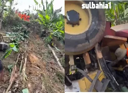 Informações repassadas ao SulBahia1, apontam que a máquina trabalhava em um terreno mais alto quando o operador perdeu o controle do veículo, desceu uma ribanceira a capotou. Felizmente, não houve registro de feridos.