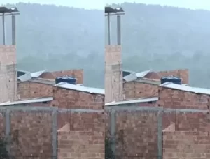Vídeo registra momento em que ventania arranca telhado de imóvel em Gandu